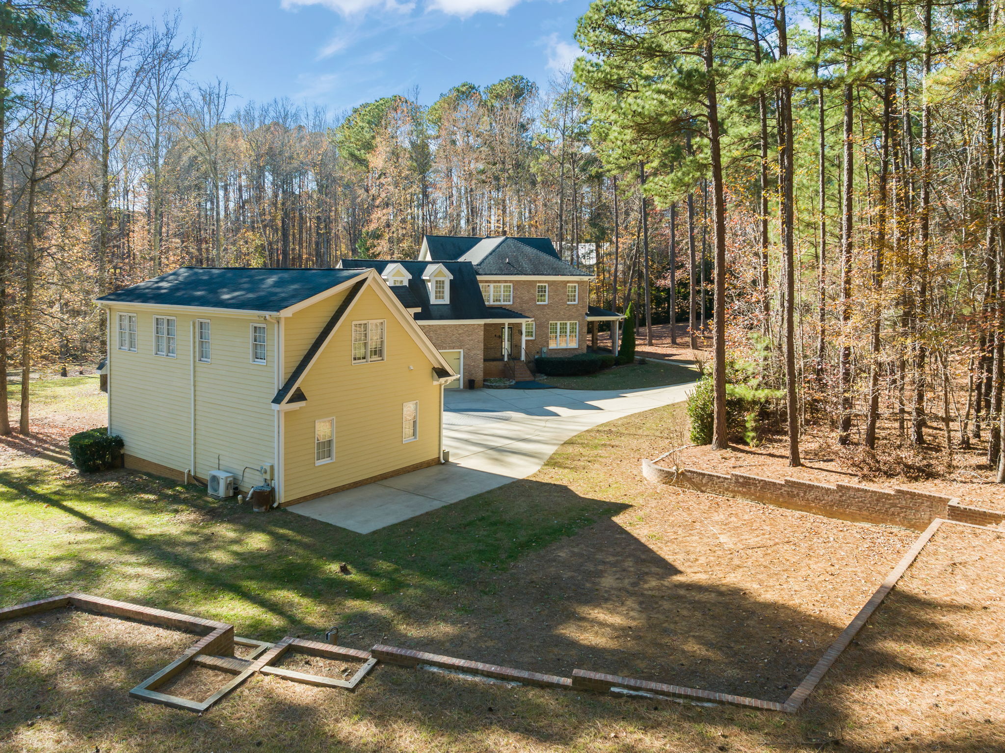 Looking for a private estate with acreage, no HOA, and a separate guest apartment near Falls Lake? This gated, custom-built basement home in Mayfair sits on 3 acres and offers 5,539 sq ft of finished living space, plus a 763 sq ft apartment above a detached three-car garage—perfect for guests, in-laws, or a dedicated home office. The main level features a primary suite, home office, formal living room, and multiple flexible bonus spaces. The septic permit allows for four bedrooms, and recent upgrades include fresh interior paint, new carpet, LVP flooring, and updated kitchen countertops (2024). Outside, enjoy an expansive driveway, five total garage bays (including two attached), and ample room to park an RV, boat, or camper. With no city taxes, this property delivers true modern country living. You’ll also have Spectrum internet, a private well, septic system, and an owned 1,000-gallon propane tank. All just 15 minutes from RDU and Falls Lake’s Rollingview Marina, 20 minutes to RTP, and 5 minutes to Harris Teeter.